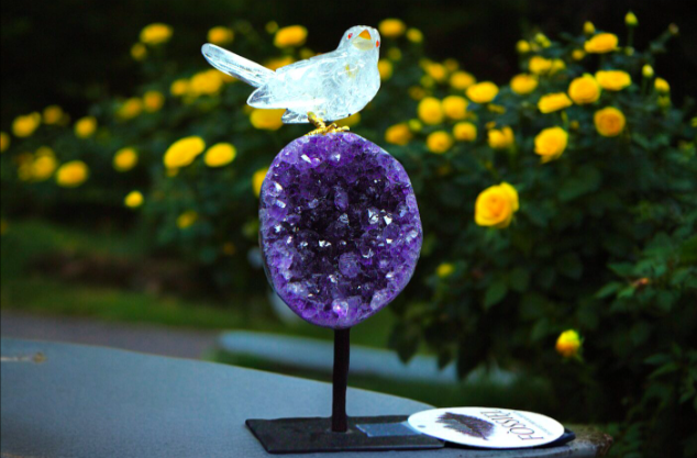 Crystal Lemurian Macaw on Uruguayan Amethyst Base